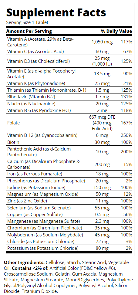 21st Century Sentry Multivitamin & Multimineral е висококачествен продукт, създаден да поддържа вашето здраве и енергия всеки ден. Тази формула предлага балансиран комплекс от основни витамини и минерали, които играят ключова роля в подпомагането на имунната система, подобряването на метаболизма и поддържането на здравето на сърцето. Независимо дали сте мъж или жена, тези мултивитамини и мултиминерали са подходящи за всички възрасти, предоставяйки нужните нутриенти за активен и здравословен начин на живот. 21st Century Sentry Multivitamin & Multimineral е идеалният избор за всеки, който търси качествени и ефективни добавки за ежедневна употреба. Поддържайте оптималното си здраве с този надежден и доказан продукт. Начин на употреба: Като хранителна добавка, приемайте 1 таблетка дневно с хранене.