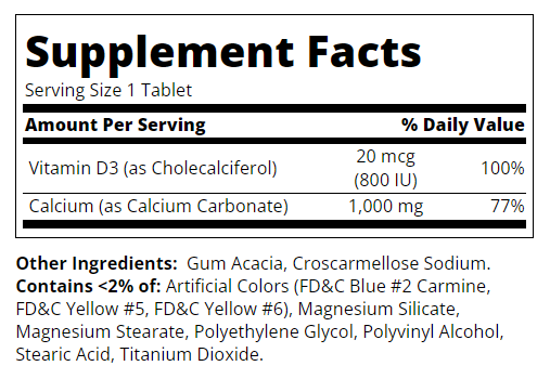 21st Century Calcium 1000mg + D3 20mcg таблетки са перфектното решение за поддържане на здрави кости, зъби и имунна система. Тази високоефективна формула комбинира 1000mg калций и 20mcg витамин D3, осигурявайки максимална поддръжка за вашето здраве. Калцият е основен минерал, необходим за здравината на костите и зъбите, а витамин D3 подпомага неговото усвояване и допринася за поддържането на здрава имунна система. С тази мощна комбинация, 21st Century Calcium 1000mg + D3 таблетки предоставят необходимите хранителни вещества за предотвратяване на остеопороза и други костни заболявания. Тези таблетки са създадени без изкуствени оцветители, аромати и консерванти, което гарантира тяхната безопасност и чистота. Удобни за приемане, те лесно могат да бъдат включени във вашата ежедневна рутина, предоставяйки необходимата доза калций и витамин D3 всеки ден. С опаковка от 90 таблетки, вие получавате дълготрайно снабдяване с необходимите хранителни вещества, което прави този продукт изключително икономичен и практичен. Независимо от възрастта, 21st Century Calcium 1000mg + D3 таблетки са идеални за всеки, който търси начин да поддържа здравето на костите и общото си благосъстояние. Изберете 21st Century Calcium 1000mg + D3 20mcg таблетки за висококачествена и надеждна подкрепа за вашето здраве на достъпна цена. Инвестирайте в своето дългосрочно здраве и се радвайте на здрави кости, зъби и силна имунна система с този ефективен и пълноценен продукт. Начин на употреба: Като калциева добавка, възрастни приемат една (1) таблетка с което и да е хранене.