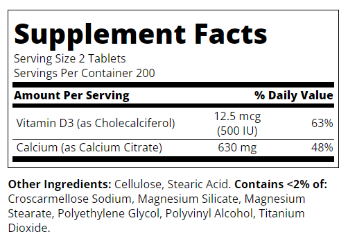 21st Century Calcium Citrate + D3 Maximum е висококачествена хранителна добавка, която осигурява оптималната комбинация от калций и витамин D3 за поддържане на здрави кости и зъби. Формулата с калциев цитрат гарантира лесно усвояване и максимална ефективност. Ползи: Подкрепа за костите и зъбите: Калцият и витамин D3 работят заедно за укрепване и поддържане на здравето на костите и зъбите. Лесно усвояване: Калциевият цитрат се абсорбира по-добре от организма в сравнение с други форми на калций. Подобрена имунна система: Витамин D3 подпомага функциите на имунната система, което е от съществено значение за общото здраве. Без добавени захари: Продуктът е без излишни добавки и захари, което го прави идеален за здравословен начин на живот. Удобен прием: Опаковката от 75 таблетки осигурява дълготрайна употреба и лесен ежедневен прием. Изберете 21st Century Calcium Citrate + D3 Maximum за поддържане на здрави кости, зъби и силна имунна система. Тази хранителна добавка е перфектният избор за хора, които се грижат за своето здраве и търсят качествени продукти. Начин на употреба: Като калциева добавка, възрастните приемат две (2) таблетки с всяко хранене.