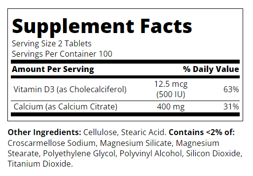 21st Century Calcium Citrate Petites + D3 е висококачествена хранителна добавка, съчетаваща калций и витамин D3 в малки, лесни за поглъщане таблетки. Тази формула е създадена, за да осигури оптимална подкрепа за здравето на костите и зъбите, като същевременно подпомага имунната система. Ползи: Подкрепа за костите и зъбите: Калцият и витамин D3 работят синергично за укрепване и поддържане на здравето на костите и зъбите. Компактни и лесни за прием: Малките таблетки са удобни за поглъщане, подходящи за хора, които имат трудности с по-големи таблетки. Подобрена усвояемост: Калциевият цитрат е лесно усвояем от организма, осигурявайки максимална ефективност. Имунна подкрепа: Витамин D3 играе ключова роля за поддържане на силна имунна система. Без добавени захари и изкуствени съставки: Здравословен избор за ежедневна употреба, без излишни добавки. Дълготрайна употреба: Опаковката от 200 таблетки осигурява дълготраен прием и удобство. Изберете 21st Century Calcium Citrate Petites + D3 за надеждна подкрепа на костите и имунната система. Тази хранителна добавка е идеалният избор за всеки, който се стреми към здравословен начин на живот и търси качествени продукти. Начин на употреба: Като калциева добавка, възрастните приемат две (2) таблетки с всяко хранене.