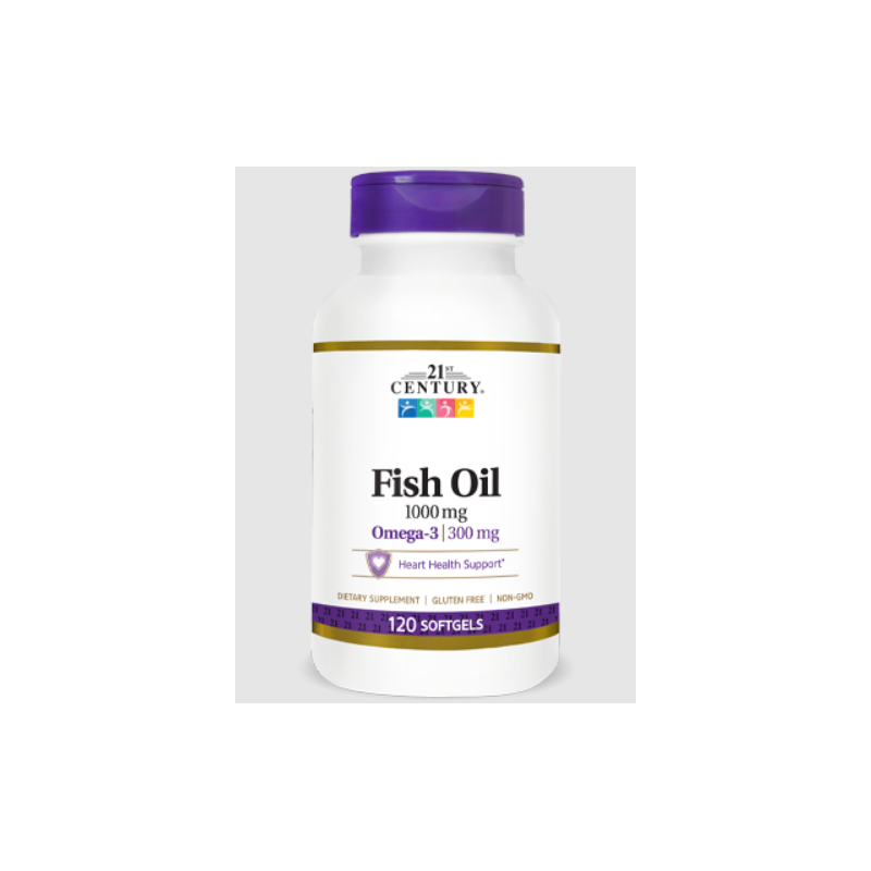 21st Century Fish Oil 1000mg е висококачествен хранителен добавка, съдържащ богат източник на Омега-3 мазнини, като EPA (еикозапентаенова киселина) и DHA (докозагексаенова киселина), известни с множеството си положителни ефекти върху здравето. Омега-3 мазнините играят ключова роля в поддържането на здравето на сърцето и кръвоносната система, като помагат за намаляване на нивата на триглицеридите и поддържане на здравословните нива на холестерола.