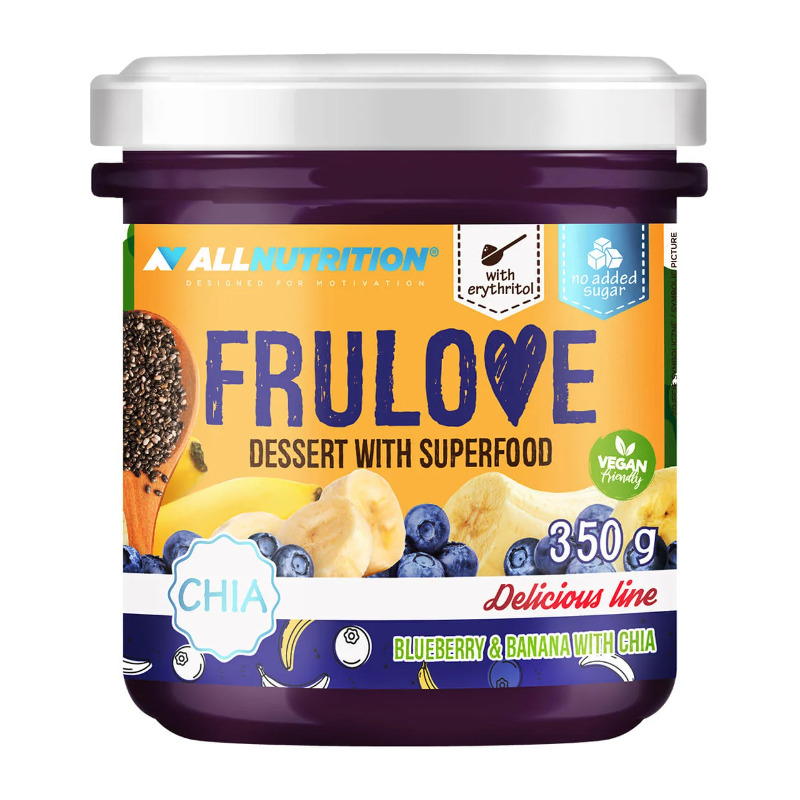 Когато деликатната наслада на вкуса се срещне с хранителните стойности, се получава невероятен десерт ALLNUTRITION FRULOVE DESSERT WITH SUPERFOODS! Нашето плодово лакомство със семена от чиа е истински празник за сетивата и перфектен избор за тези, които искат малко здравословно удоволствие. ALLNUTRITION FRULOVE DESSERT WITH SUPERFOODS не съдържа добавена захар и е подходящ за вегани.
