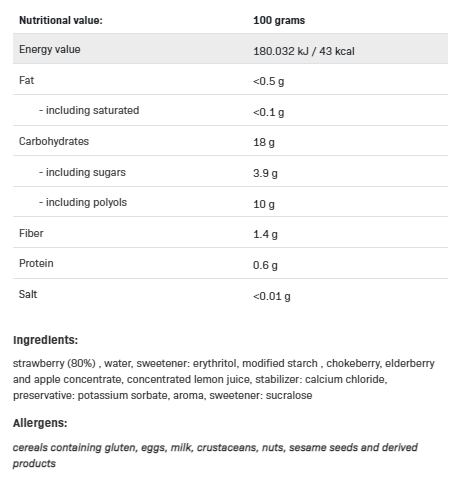 ALLNUTRITION FRULOVE IN JELLY STRAWBERRY са ягоди в конфитюр с лека консистенция, донякъде напомняща желе, в което сме потопили парченца сочни и вкусни ягоди.