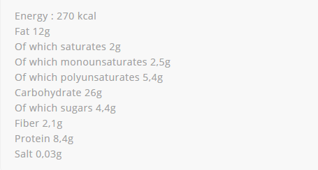Allnutrition Natural Cookie е неустоима комбинация от сушени плодове, тиквени семки, слънчогледови семки, ленено семе, мед и протеин. Не съдържа глутен. Перфектна е за бърза закуска, преди и след тренировка или междинно хранене в моменти, когато сме на крак и искаме нещо бързо и вкусно.