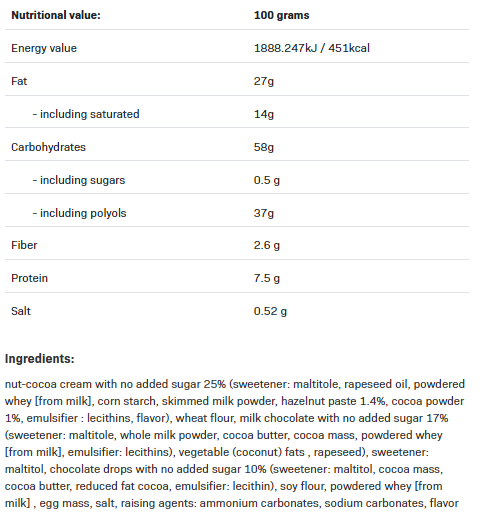 NUTLOVE COOKIES CHOCOLATE CHIP са направени от най-висококачествени съставки! Разбира се, те са подходяща версия на бисквитките, тъй като към тях не сме добавили палмово масло или захар – подсладени с МАЛТИТОЛ! 🙂