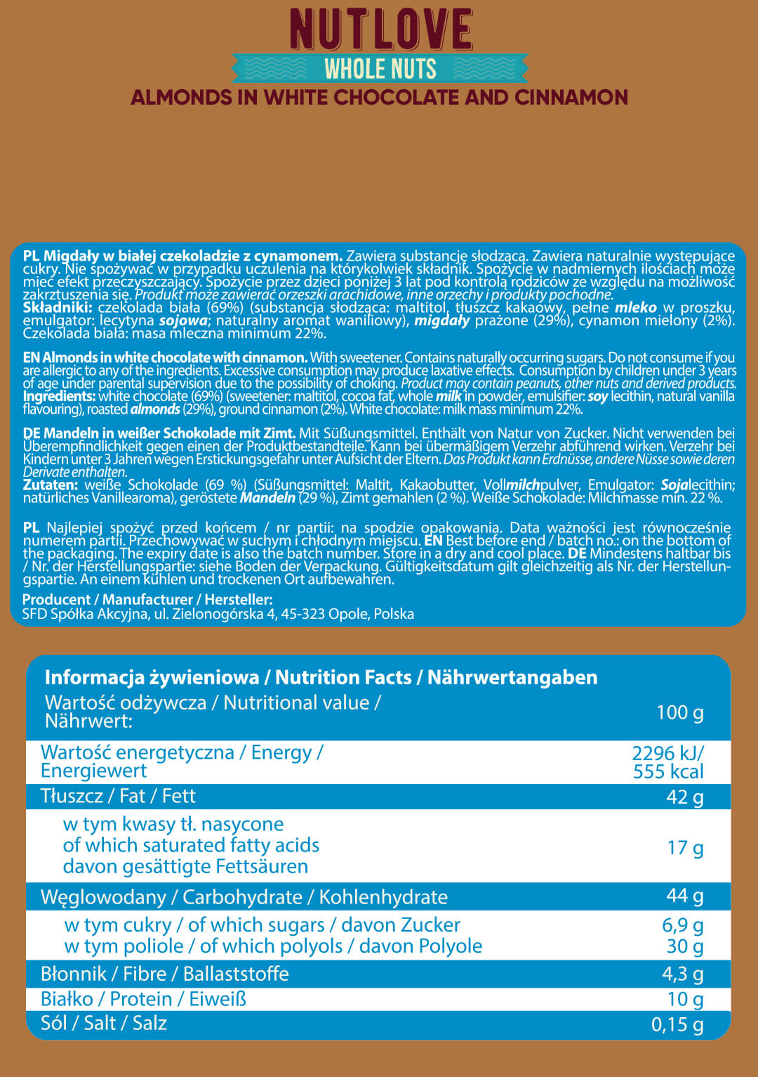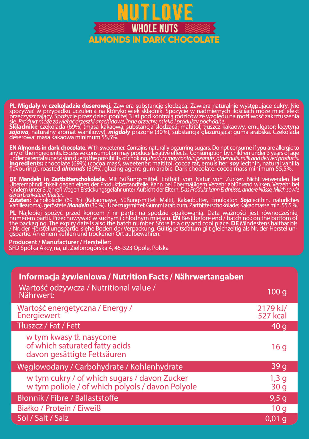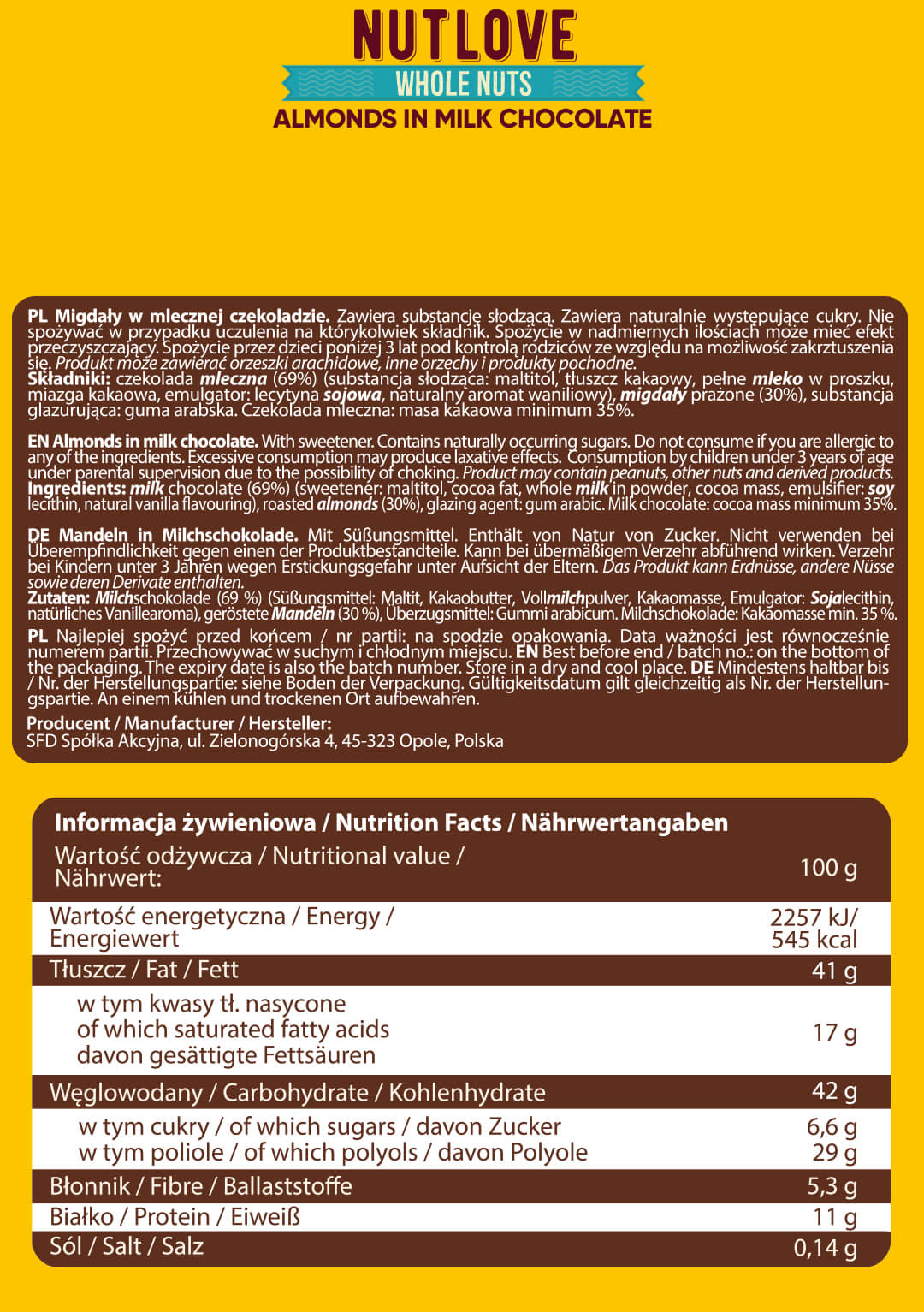 Allnutrition NutLove Whole Nuts – Almonds са хрупкави бадеми, покрити с млечен шоколад. Ако обичате ядки и млечен шоколад, това е идеалната комбинация за вас. Хрупкавите бадеми, покрити с шоколад, със сигурност ще ви дадат енергия за целия ден!