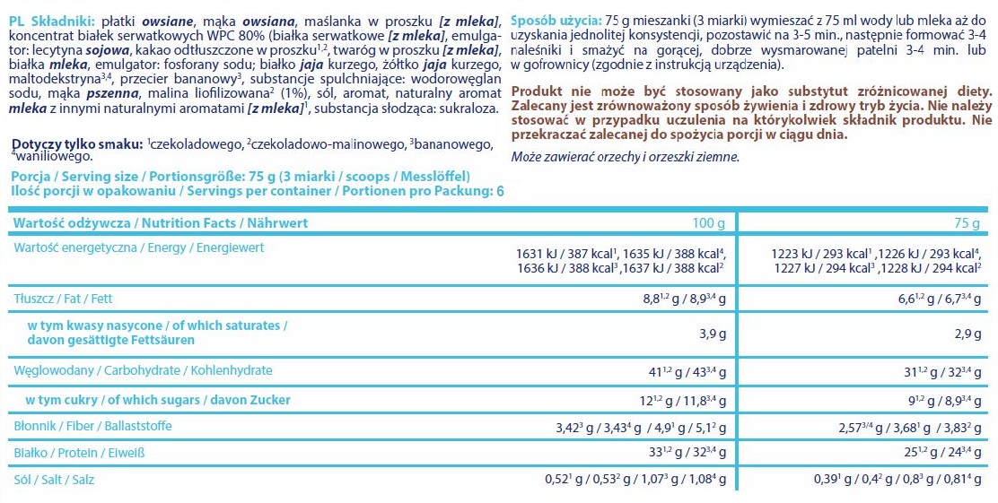 Allnutrition Pancakes Protein е обогатен с WPC концентрат от суроватъчен протеин. WPC е протеин от животински произход, получен в процеса на преработка на мляко. Протеинът допринася за изграждането и поддържането на чиста мускулна маса и ускорява регенерацията след тренировка.