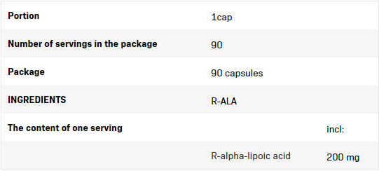 R-ALA (R-алфа-липоева киселина) активна форма, показваща биоактивния потенциал на липоевата киселина (ALA).