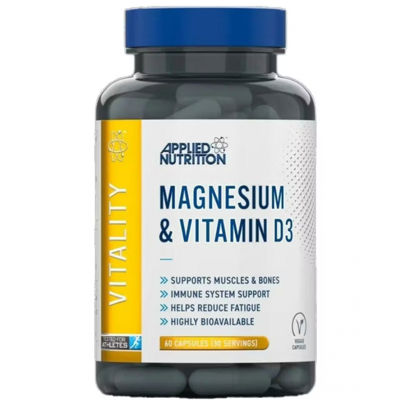 Applied Nutrition Magnesium & Vitamin D3 е хранителна добавка, която комбинира магнезий и витамин D3 — две ключови за костното, мускулното и нервното здраве хранителни вещества.