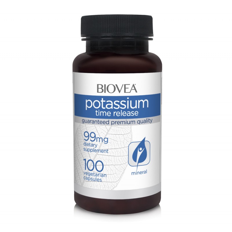 Какво е калий и какво прави? Калият е минерал, който помага на бъбреците да функционират нормално. Той също така играе ключова роля в сърдечната, скелетната и гладката мускулна контракция, което го прави важно хранително вещество за нормалната сърдечна, храносмилателна и мускулна функция. Диета с високо съдържание на калий от плодове, зеленчуци и бобови растения обикновено се препоръчва за оптимално здраве на сърцето. Калият играе неразделна роля в човешкото тяло при контрола на водния баланс на тялото. Той работи заедно с натрий, за да поддържа нивата на водата в организма постоянни. Калият също е необходим за правилното функциониране на нервните импулси и свиването на целия мускул в човешкото тяло, а също така помага да се поддържа редовен, нормален сърдечен ритъм. Другата съществена функция на калия в човешкото тяло е да съхранява въглехидрати, които след това се разграждат за енергия. Диетичните източници на калий са огромни и разнообразни. Абсолютният най-добър източник на хранителен калий обаче може да се намери в консумацията на зелени листни зеленчуци. Други отлични източници са бананите и портокалите. Заедно с тези плодове, калий може да се намери в добри количества в зеленчуци като картофи и боб. Млечните продукти също са богати на този минерал, както и повечето постни меса. Въпреки това, нивата на калий в храните често се намаляват поради методите за преработка на повечето произведени хранителни продукти. Кой се нуждае и какви са симптомите на дефицит? Недостигът на калий се появява с основната проява на дефицита в мускулната слабост и умора. Страдащите от дефицит на калий също могат да получат симптоми като световъртеж и умствено объркване. В екстремни случаи липсата на източници на калий в човешкото тяло може да причини нарушение на функционирането на нервите и мускулите, което води до абнормни сърдечни ритми. Освен това, дефицитът на калий може да доведе до замръзване на мускулно-скелетната система, поради което свива червата и причинява запек. Има ли странични ефекти? Стомашно-чревните симптоми са най-честите нежелани реакции на калиевите добавки, включително гадене, повръщане, дискомфорт в корема и диария. Приемът на калий по време на хранене или приемането на микрокапсулирана форма на калий може да намали нежеланите реакции от страна на стомашно-чревния тракт. Най-сериозната нежелана реакция към добавките с калий е хиперкалиемия. Хиперкалиемия възниква, когато приемът на калий надвишава способността на бъбреците да го елиминират. Острата или хронична бъбречна недостатъчност, употребата на калий-съхраняващи диуретици и недостатъчната секреция на алдостерон (хипоалдостеронизъм) могат да доведат до натрупване на излишен калий поради намалената екскреция на калий в урината. Начин на употреба: Приемайте по 1 капсула дневно по време на хранене.