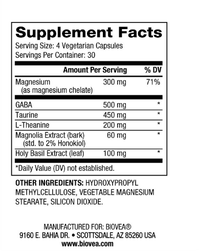 Магнезий: Основен минерал, който подпомага релаксацията на вашите мускули и нерви в синергия с GABA и таурин. Той е особено важен за релаксация, тъй като магнезият поддържа балансирани мускулни контракции и инхибира прекалено възбудимите реакции от нервите в централната нервна система.