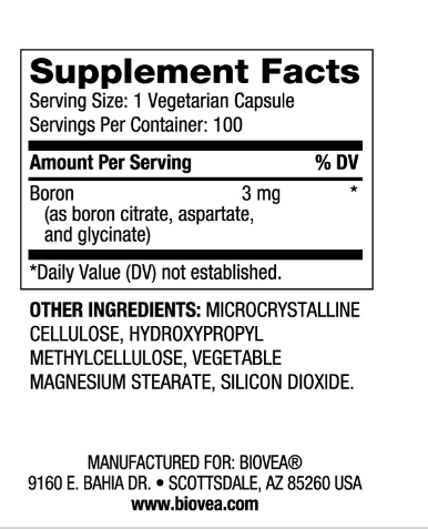 Какво е Triple Boron? Борът е естествено срещащ се минерал, който се намира в храната и околната среда и в миналото е бил използван като лекарство. Съдържащ три вида от този микроелемент, Triple Boron включва една хелатна форма за подобрено усвояване. Важен минерал за растежа и развитието на здрава костна тъкан, Triple Boron е важен и за циклите на поддържане на костите, здравето на ставите, мускулната функция, както и когнитивната функция. Какво прави Triple Boron? Triple Boron работи за подобряване на усвояването на калций, магнезий и фосфор в организма, за да помогне за изграждането и поддържането на здрави и силни зъби и кости. Тези минерали също работят заедно за поддържане на здрава мускулна функция и нервни комуникации в меките тъкани. Triple Boron може да помогне за повишаване на нивата на хормоните, включително тестостерон, за да поддържа здравето на простатата, повишената физическа работоспособност и издръжливост. Triple Boron също има противогъбични способности, за които е известно, че са особено полезни за убиване на дрождите, които причиняват вагинални инфекции. Начин на употреба: Приемайте по 1 капсула дневно по време на хранене.