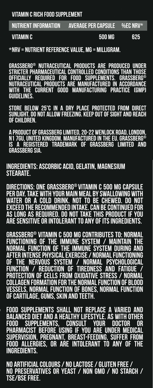 Една капсула от Grassberg Vitamin C 500mg е напълно достатъчна, за да си набавите нужното количество от витамина.