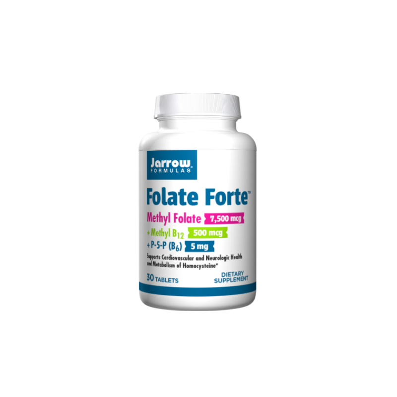 Jarrow Formulas® Folate Forte™ с метил фолат плюс метил B12 и пиридоксал-5-фосфат (P-5-P) съчетава активните форми на фолат и витамин B6 и B12 , за да подпомогне синтеза на ДНК и невротрансмитери, метаболизма на аминокиселините и енергиен метаболизъм.
