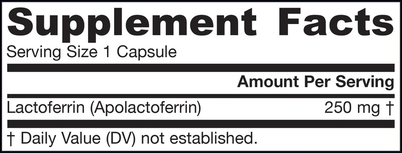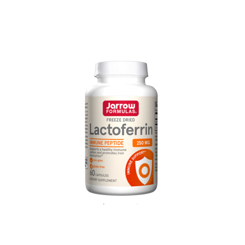 Важен поддържащ имунитета гликопротеин, който се намира в кърмата, сълзите и други телесни течности. Изсушеният чрез замразяване Jarrow Formulas Lactoferrin® (аполактоферин/ултра ниско съдържание на желязо) е важен имуноподдържащ гликопротеин, който се намира в майчиното мляко. Смилането на лактоферина от стомашния пепсин освобождава имуноподдържащия пептид лактоферицин В. Една от биологичните активности на лактоферина идва от мощната му способност да улеснява усвояването на желязото. Сушенето чрез замразяване запазва по-добре деликатната структура на лактоферина. Начин на употреба: Приемайте по 2 гел-капсули на ден с храна или според указанията на Вашия квалифициран медицински специалист.
