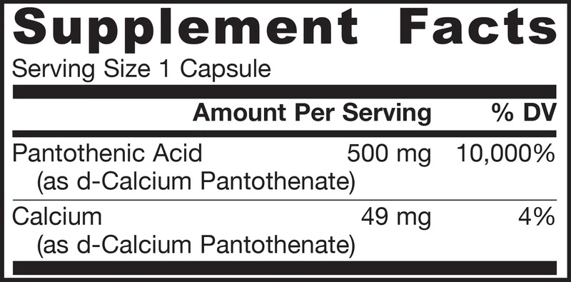 Пантотеновата киселина е основен витамин В, който подпомага производството на надбъбречни хормони и метаболизма на мазнини, въглехидрати и протеини за производство на енергия.