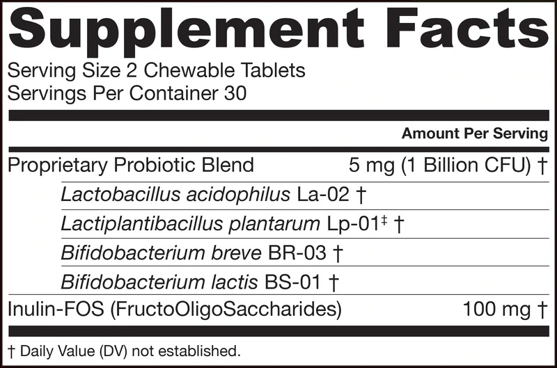 Jarrow Formulas® Yum-Yum Dophilus® – пробиотик за деца, предоставя 4 клинично документирани щама полезни бактерии във вкусна таблетка за дъвчене. Полезната чревна флора може да бъде отрицателно повлияна или намалена от диета с ниско съдържание на фибри, високо съдържание на животински протеини, употреба на лекарства, пътуване и стрес и т.н. Резултатът е дисбиоза (т.е. нарушаване на чревната микрофлора), което може да влияят негативно на стомашно-чревната функция и благосъстоянието.