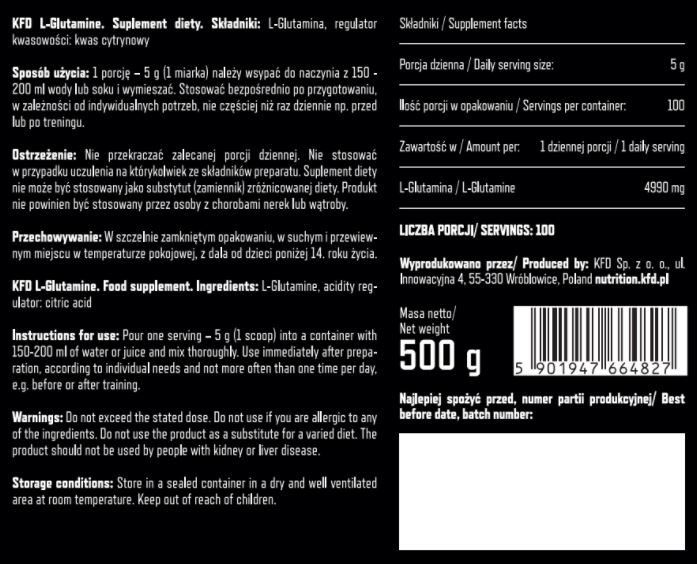 KFD Premium Glutamine – Глутамин, Вкус Неовкусен, Разфасовка 500g