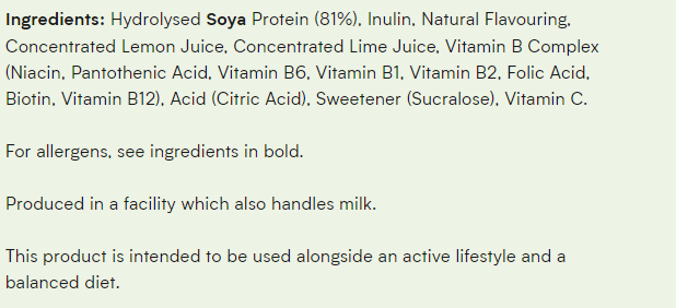 Харесвате ли соев протеин? Ще харесате нашия първи в света прозрачен соев протеин, произведен чрез технология за хидролиза. Този освежаващ веган протеинов прах се разтваря напълно в бистра, сочна напитка – обогатена с истински плодове, витамини и всичките девет незаменими аминокиселини, които тялото ви не може да произведе естествено и които могат да бъдат трудни за набавяне чрез източници на растителна храна. И ако се грижите за здравето си, Clear Soy Protein ще бъде вашият най-добър приятел. Сладка, но със сигурност не от захар, всяка порция съдържа само 1g захар и се предлага в три плодови вкуса – грозде, лимон и лайм и портокал и розов грейпфрут. Clear Soy Protein е вкусен и удобен начин да увеличите приема на протеини и да утолите жаждата си в едно. Снабден с 10g протеин на порция, тази първа в света иновация използва технология за хидролиза, за да превърне соевия протеинов изолат в лека, сочна напитка – чудесна алтернатива на сладките безалкохолни напитки и традиционните кремообразни протеинови шейкове. Освен че има пълен аминокиселинен профил, който помага за растежа и възстановяването на мускулите, Clear Soy Protein доставя 30% от препоръчителния ви дневен прием на витамини от група В, за да поддържа цялостното ви здраве и благополучие. Начин на употреба: Смесете 2 лъжички (17g) с 300-400ml вода.