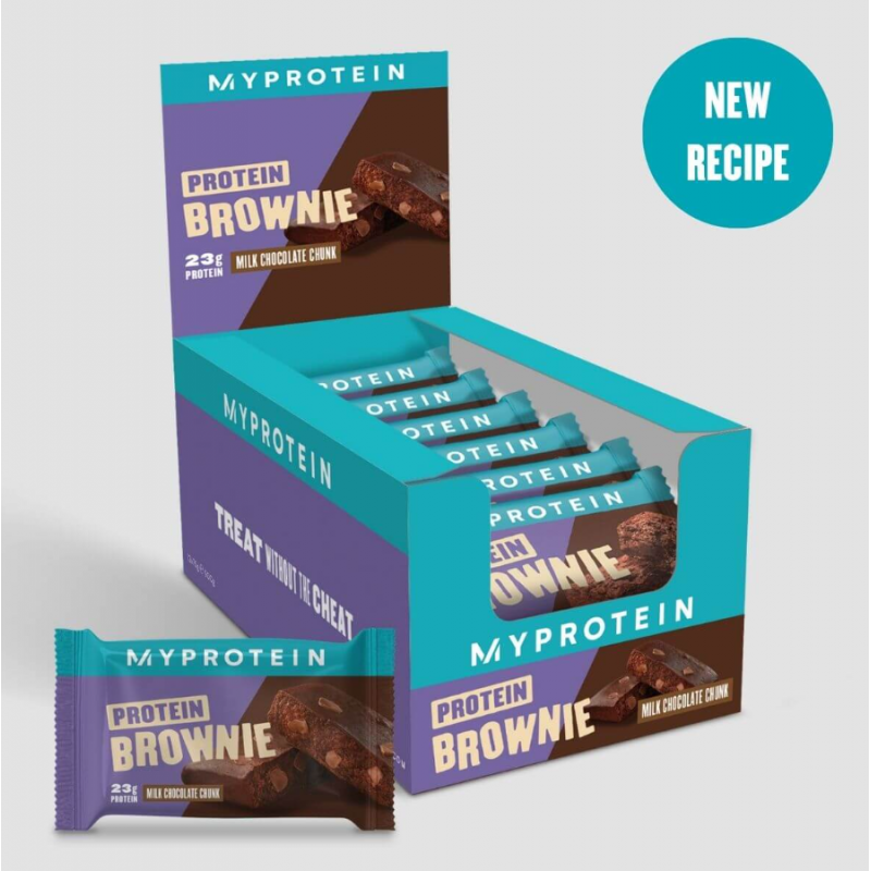 Myprotein Protein Brownie е протеиново кексче, създадено от най-добрите какаови зърна и обсипано с първокласен шоколад! Myprotein Protein Brownie е перфектната закуска, тъй като съдържа 23гр. висококачествен суроватъчен протеин и само 4гр. захар. Myprotein Protein Brownie се топи в устата, има уникален вкус, а в същото време е в пъти по-здравословно от останалите протеинови десерти на пазара.