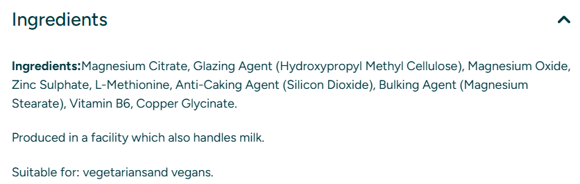Myprotein Zinc + Magnesium е синергична формула, съдържаща Цинк Метионин и Магнезиев оксид, подобрени с Витамин B6. Цинкът е важен минерал, участващ в много процеси в човешкия организъм, като се започне от протеиновия синтез и клетъчния растеж и се стигне до подсилване на имунната система и регенериращите процеси. Всъщност цинкът е минералът участващ в най-много физиологични процеси в човешкия организъм.