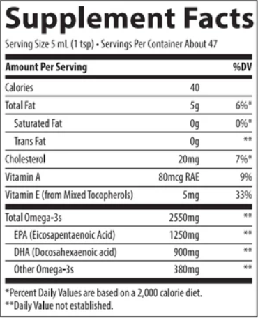 Trace Minerals Adult Liquid Omega-3 е висококачествена течна добавка, която осигурява необходимите омега-3 мастни киселини за поддържане на сърдечното здраве, мозъчната функция и цялостното добро състояние на организма. Формулата е създадена с висококонцентриран рибен източник на EPA и DHA, които спомагат за намаляване на възпаленията, подобряване на когнитивните функции и подкрепа на имунната система. Тази течна форма улеснява приемането и е подходяща за възрастни, които търсят удобен начин да добавят важни омега-3 мастни киселини в своя ежедневен хранителен режим.