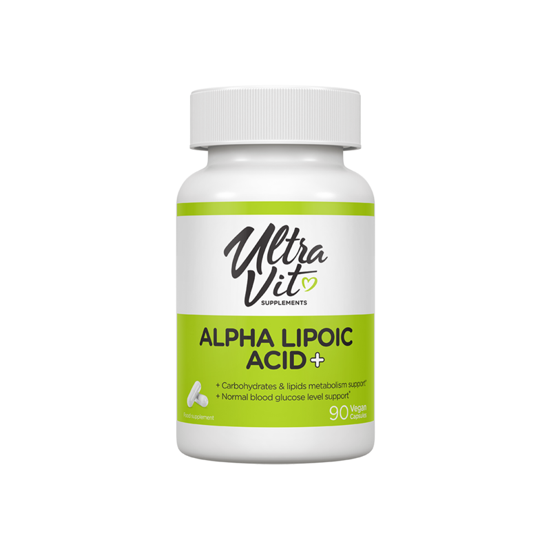 Алфа-липоевата киселина е антиоксидант, който се съдържа в много храни и се произвежда естествено в телата ни. За съжаление, естествено произведената алфа липоева киселина намалява с възрастта, това може да увеличи увредените от свободните радикали увреждания. Също така, алфа липоевата киселина играе важна роля за превръщането на храната в енергия, а също и за подобряване на чувствителността към инсулин, поради което тя може да помогне за предпазване от диабетни усложнения. UltraVit Alpha Lipoic Acid+ включва хром в комплекса си, за да поддържа нормалния метаболизъм на въглехидратите и липидите.