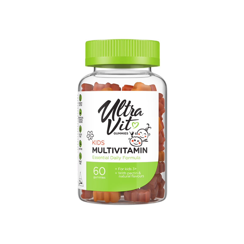 UltraVit Gummies Kids Multivitamin са пълният източник на основни витамини, тъй като един гумен бонбон съдържа витамини А, С, D, Е, В6, В12, фолиева киселина, биотин, пантотенова киселина, йод, цинк, холин и инозитол. UltraVit Gummies Kids Multivitamin с пет невероятни естествени вкуса и без основни алергени са специално разработени, за да поддържат децата здрав растеж и развитие и активно благосъстояние.